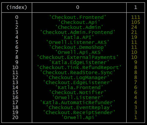 console.table(sortByMostDeploys(projectAndDeployCount));
